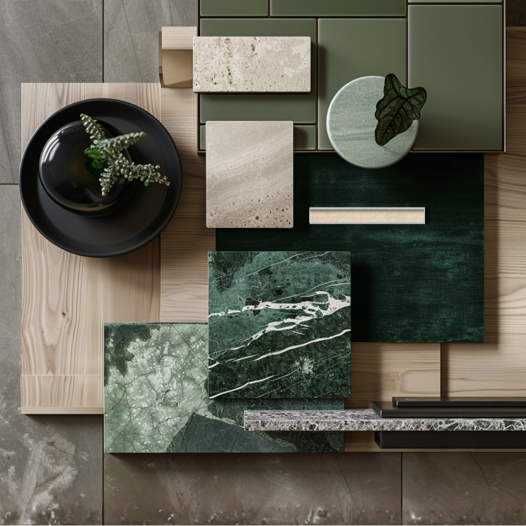Wyobraź sobie małą łazienkę, która staje się „kamienną kapsułą” – każda powierzchnia pokryta trawertynem albo zielonym marmurem, światło odbija się od surowej faktury, a ty wchodzisz do środka jak do luksusowej jaskini. Albo salon, w którym aksamit nie kończy się na sofie – jest także na zasłonach, panelach ściennych i parawanie, tworząc przestrzeń jak z teatralnej sceny.