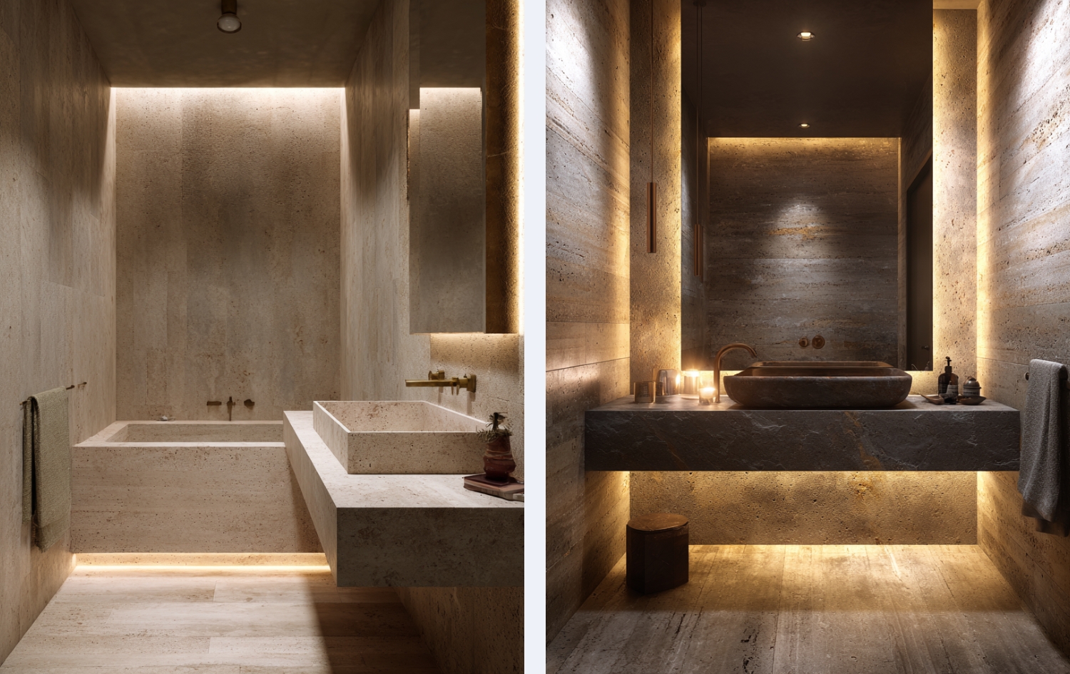 Przez lata kochaliśmy jasne marmury – polerowane, błyszczące, idealne. W 2026 wchodzi ich zupełne przeciwieństwo: ciemny, matowy trawertyn w wersji niewypełnionej. Surowy, porowaty, chropowaty – taki, który aż chce się dotknąć.