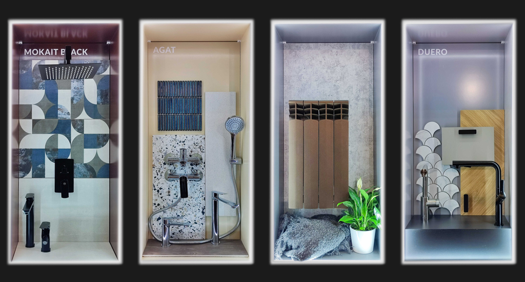 Kolejnym wyzwaniem, z którym musiałam się zmierzyć, był sposób prezentacji baterii łazienkowych i kuchennych. Zależało mi, aby projektowane przeze mnie stoisko nie było typową, znaną nam z wielu targów ekspozycją, polegająca na wystawieniu wyposażenia na sąsiadujących ze sobą postumentach.